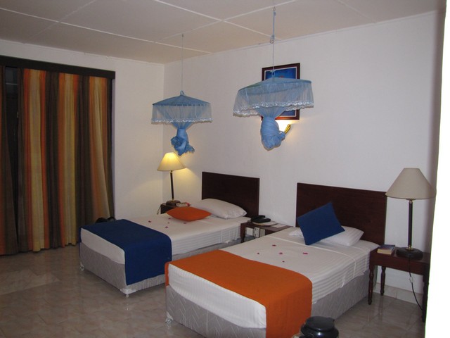um den Pool gruppieren sich 4 Häuser mit je 4 Zimmern, sehr gepflegt und perfekt sauber. Moskitonetze sind auch vorhanden. So hätten wir es uns immer gewünscht. In der Hotelleitung arbeitet ein Deutscher, am Pool steht eine Dose „Ata“, sogar die Putzmittel sind deutsch