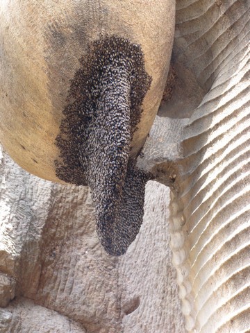 Die Statue ist wirklich sehr schön aber wieder mal fasziniert vor allem die Natur: am Ellenbogen der Statue hängt eine Bienenwabe: