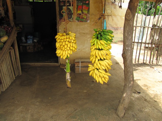 die Bananen schmecken ganz herrlich hier und ich habe mir fest vorgenommen diesmal den Grundsatz kochen, schälen oder weglassen zu beherzigen. Außerdem versuchen wir so unser zweites Urlaubsproblem zu beheben: wir haben kein Kleingeld und niemand kann rausgeben. Wir haben schon etliche Flaschen Wasser und Postkarten nicht gekauft weil jeder passendes Geld erwartet. An der Küste war das kein Problem aber hier im Hinterland kann man mit 1000 Rupies Scheinen schier nicht bezahlen, man braucht aber mehrere 100 Rupies Scheine pro Tag für Trinkgeld.
