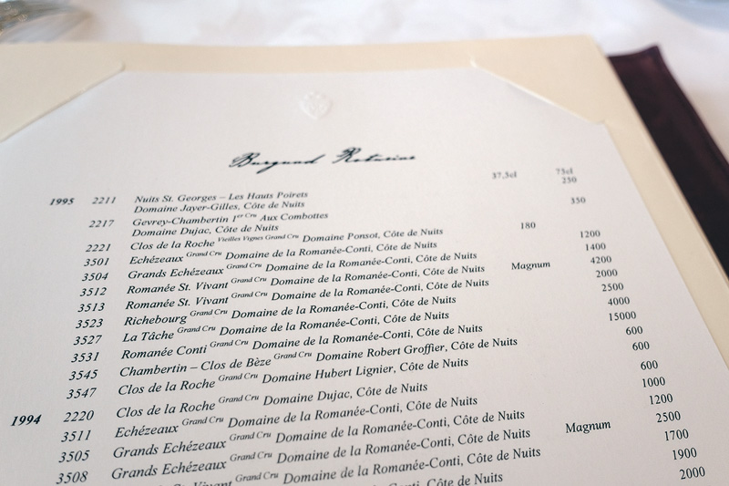 Wenn man das Restaurant zum ersten Mal betritt, wird man von der Einrichtung fast erdrückt – weiss-blau-goldene Sessel, goldene Vorhänge und ausladend dekorierte Tische auf blauem Teppich. So viel Opulenz findet man in Spitzenrestaurants nur noch selten. Das Restaurant könnte nach meinem Geschmack moderner und dezenter gestaltet sein, aber Bauhaus-Design würde hier auch nicht dazu passen. Beim mittlerweile 3. Besuch haben wir uns an das barocke Ambiente gewöhnt. Der Service ist sehr aufmerksam, aber für meinen Geschmack zu steif. Für den Service ist es immer ein Spagat zwischen Diskretion und Lockerheit. Ein Gast möchte still genießen, der andere Gast auch mal zwischendurch plaudern. Die Karte offeriert vier Menüs, darunter ein vegetarisches Menü, und eine vorzügliche à-la-carte- Auswahl. Die Weinkarte oder besser gesagt Buch bietet ein hervorragendes Sortiment. Die Beratung durch Sommelier Jürgen Fendt ist sehr kompetent, ohne das einem ein teurer Wein aufgeschwatzt wird.