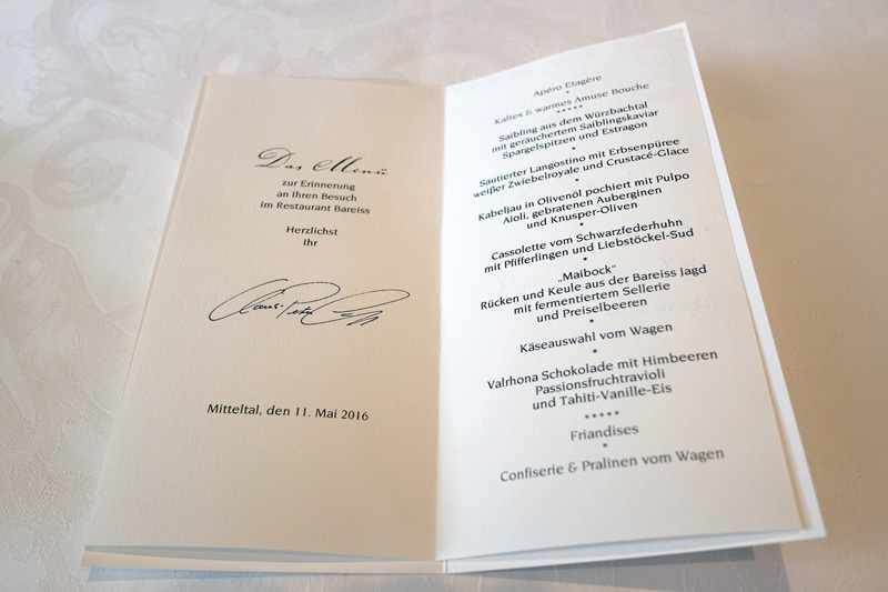 Wenn wir schon im Hotel Bareiss entspannen, darf ein Besuch im Gourmet-Restaurant Bareiss oder in der Schwarzwaldstube/Tonbach nicht fehlen. Da beide Restaurants eine ähnliche kulinarische Philosophie haben, entscheiden wir uns für das Bareiss. Das Bareiss ist eines von elf 3-Sterne-Restaurants in Deutschland (Michelin 2016). Claus-Peter Lumpp führt das Küchenzepter seit 1992 in dem Restaurant. Küchenchef Claus-Peter Lump hat sich nicht neu erfunden, aber sich dem Zeitgeist der Haute Cuisine angepasst. Das Bareiss legt den Fokus auf klassisch inspirierte Küche, anstatt auf kulinarische Avantgarde.