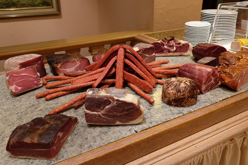 Bündnerfleisch, geräucherter Kochschinken, Wacholderschinken, gekochter Schinken und div. Wurstsorten.