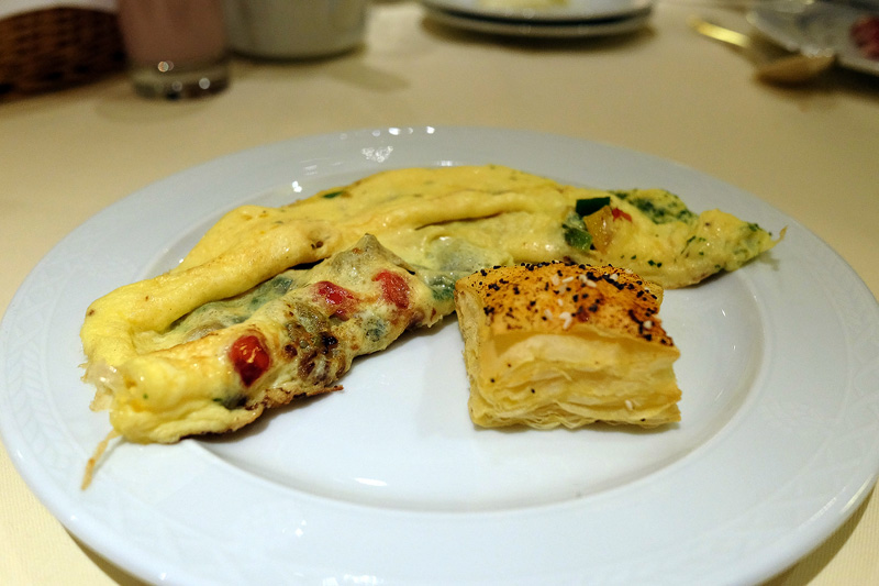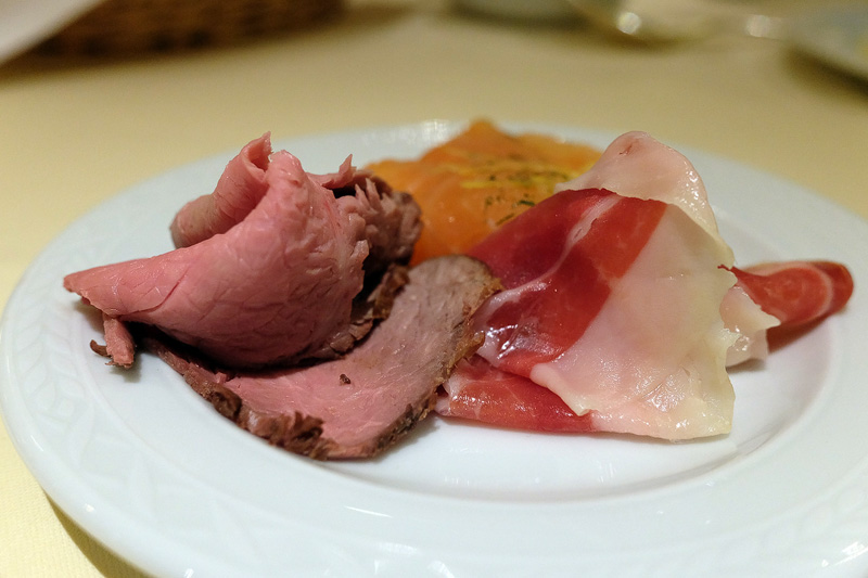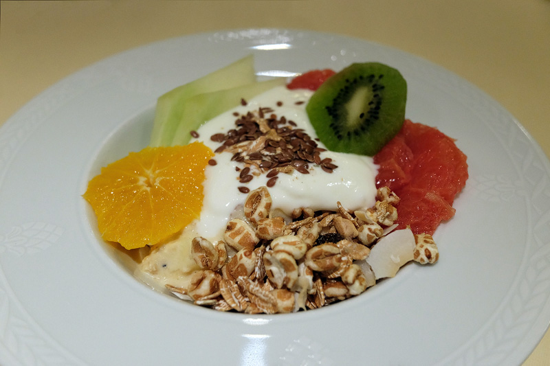 Beschränkt habe ich mich auf Kaffee, Schinken, Lachs, Omelett und Müsli.