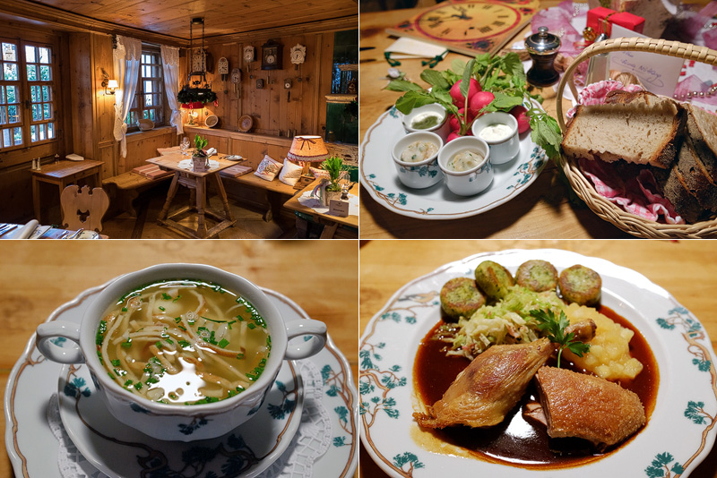 Den Abend beschließen wir in den Dorfstuben. In dem urigen Stüberl gibt es Gerichte aus der Region.