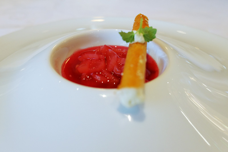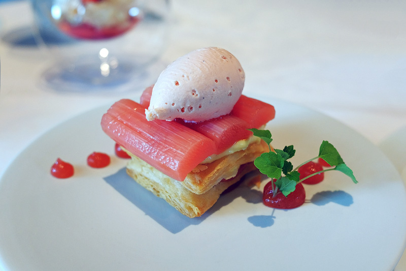 Rhabarbertarte mit Tahiti-Vanille und Rhabarber Buttereis.