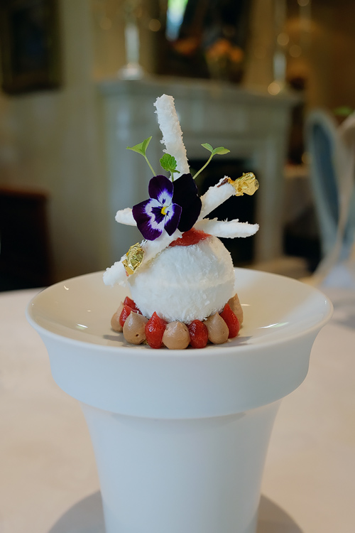 Vacherin von Kokosnuss und Erdbeere.