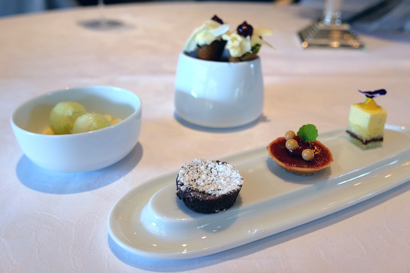 Am Ende des Menü gibt es noch feine Petit Fours und eine kleine Auswahl vom reichhaltigen Kuchen- und Pralinenbuffet.
