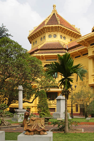 Von der Oper aus ist es nicht mehr weit bis zum Büro des Tourveranstalters, bei dem ich für den übernächsten Tag schon von zu Hause aus eine dreitägige Schiffstour in die Halong-Bucht gebucht habe. Nachdem ich mich ein wenig durchgefragt habe, finde ich schließlich das Büro und zahle den restlichen Betrag. Als Dank bekomme ich eine schöne Broschüre über die Fahrt und das Schiff und einen etwas weniger schönen Erinnerungsteller. Hm, mein Koffer wiegt ja schon 25 kg. Ich bin nicht sicher, ob dieses Stück es mit zu mir nach Hause schaffen wird. Die Angestellte spricht übrigens etwas deutsch und erzählt mir, dass sie ein Studienprogramm in Hamburg absolviert hat.