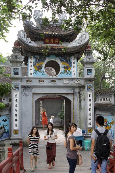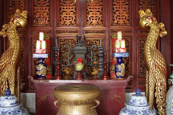 Schließlich kehre ich an den Hoan-Kiem-See zurück, um dort noch dem Jadebergtempel einen Besuch abzustatten. Der Tempel steht auf einer Insel, die über eine pittoresken Brücke mit dem Ufer verbunden ist.