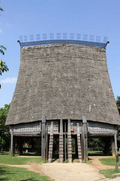 Das Museum wird in meinen beiden Reiseführern wärmstens empfohlen. Zurecht. Es ist richtig gut gemacht, und ich bekomme sogar einen Flyer auf deutsch, der die wichtigsten Ausstellungsstücke erklärt. Etwa 84 % der in Vietnam lebenden Menschen gehören zur ethnischen Gruppe der Viet. Die restliche Bevölkerung teilt sich in über 50 ethnische Gruppen auf. Im Museum sind verschiedene Gegenstände und Trachten ausgestellt und man bekommt einen Einblick in das Alltagsleben der Gruppen.