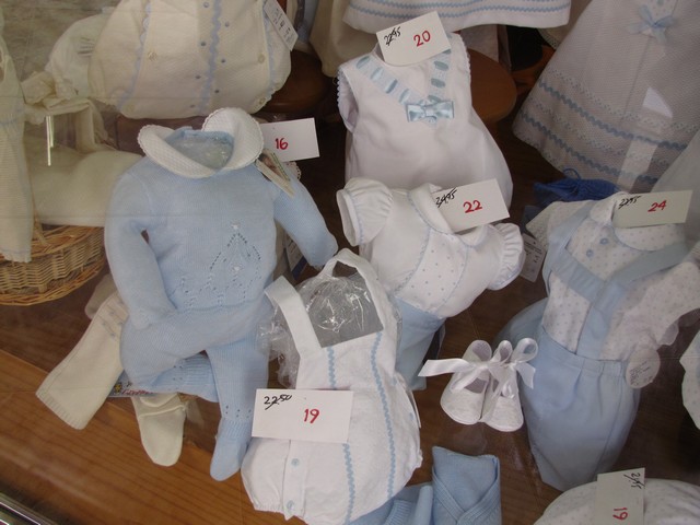 solche gestrickten Anzüge und Hemdchen mit Krägelchen sind bei uns schon 50 Jahre aus der Mode, hier hat man aber im Kinderwagen Babys mit solchen Klamotten gesehen. Das ganze gab es natürlich auch noch in rosa…