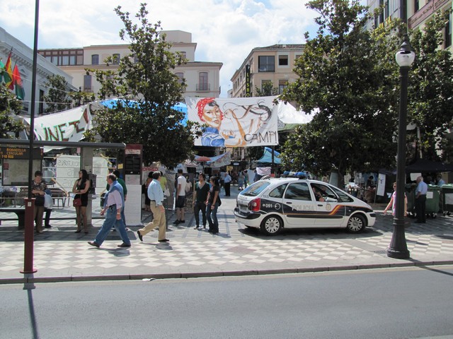 Danach geht es durch die Innenstadt, dabei sehen wir wieder ein Protestcamp von jungen Leuten, da stehen viele Leute und diskutieren.