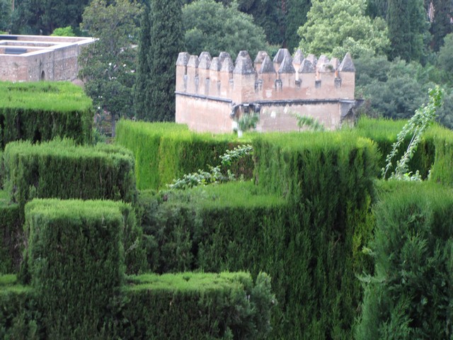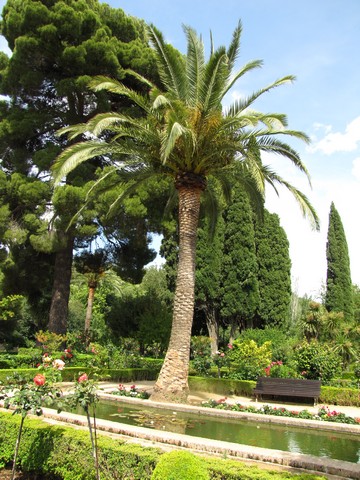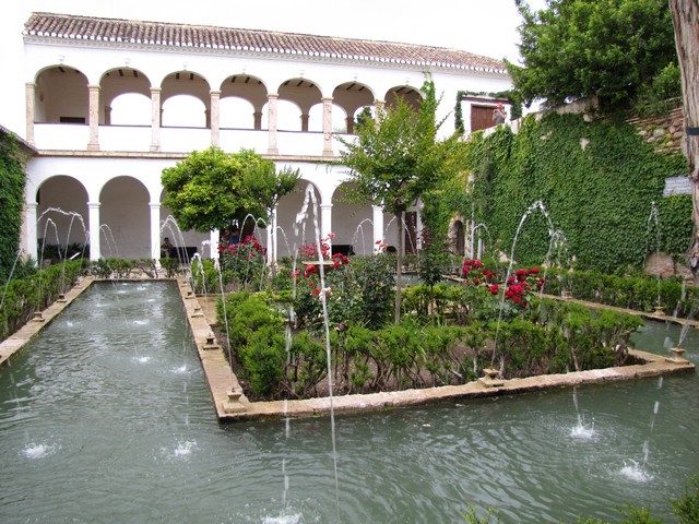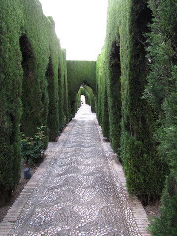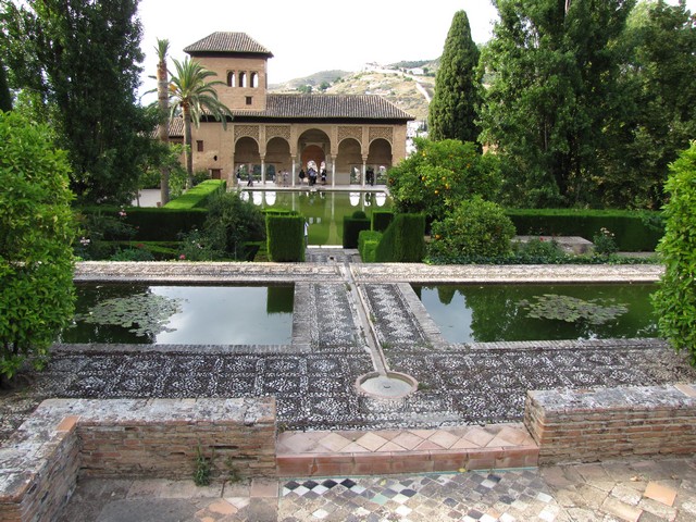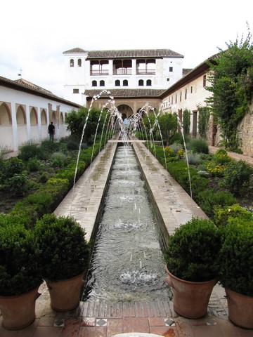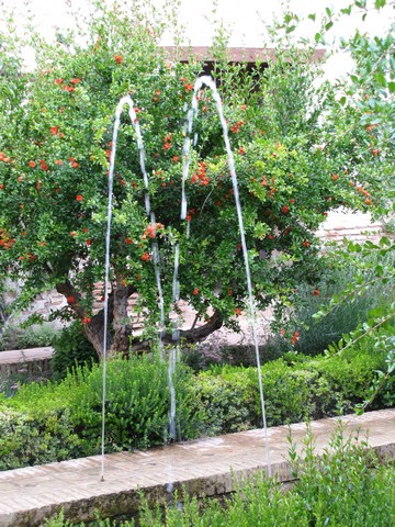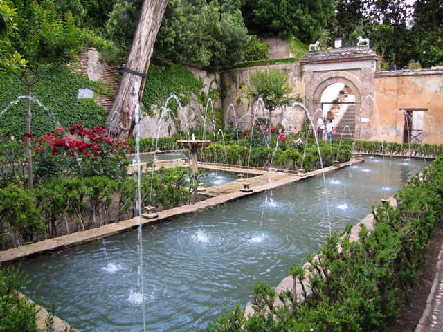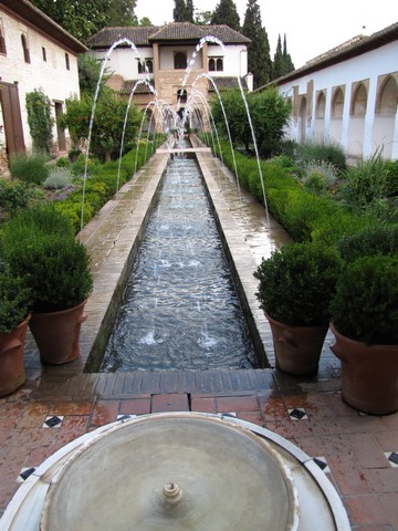 Die Gärten draußen haben dann vor allem durch die Wasserspiele und die schön mit schwarz-weißen Steinen angelegten Wege gepunktet, blühende Blumen waren eher Mangelware, das war in Cordoba schöner