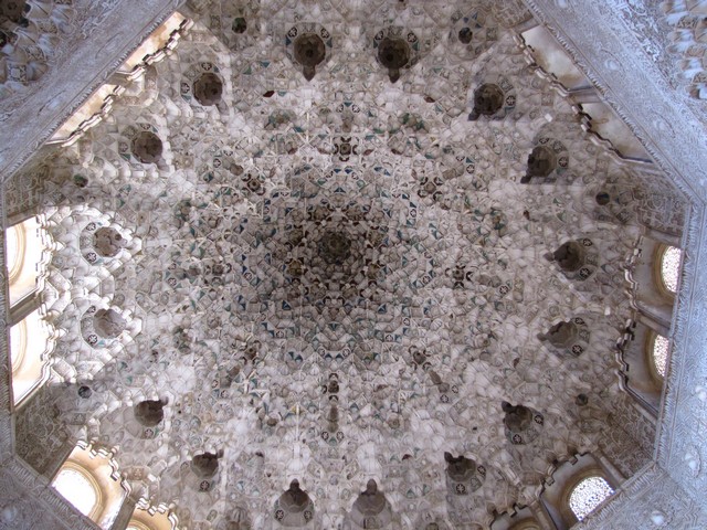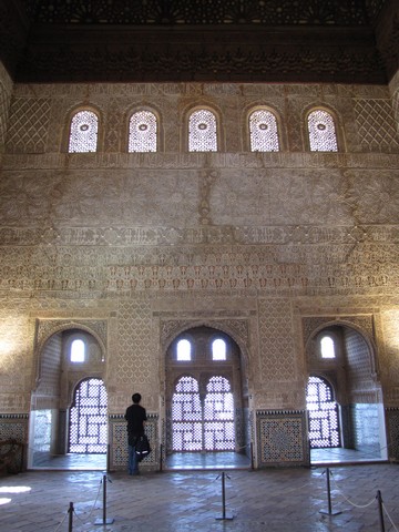 da habt ihr wohl auch eines der nachmittäglichen Sommergewitter erwischt? Uns ist es bisher noch nicht gelungen, eine Alhambra-Aufnahme ohne dunkle Wolken zu bekommen  :roll: Die Steinmetzarbeiten faszinieren mich jedes mal wieder. Da hat man wohl nicht mehr viel an Einrichtung gebraucht damals  :D
