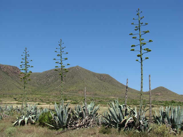 Im Hinterland wachsen hunderte von Agaven und die meisten blühen:
