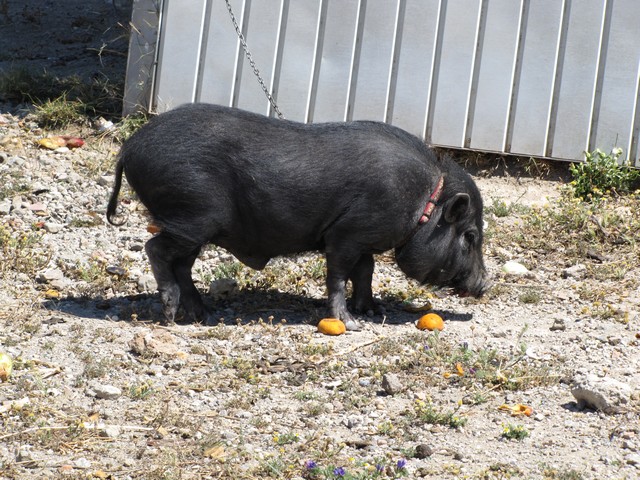 ich wusste gar nicht dass Schweine Orangen fressen, solche kleine schwarze Schweine haben wir öfter in Vorgärten gesehen hier in diesem Gebiet.