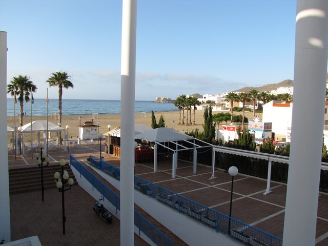 In San Jose angekommen finden wir unser Hotel direkt an der Strandpromenade liegend. Der Strand ist sehr sauber, etwas grobkörniger Sand, zum Baden gut geeignet. Unser Zimmer im zweiten Stock hat einen kleinen Balkon von dem aus man aufs Meer blickt: