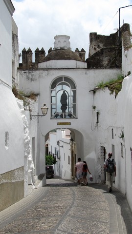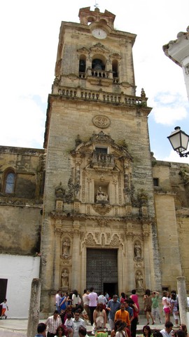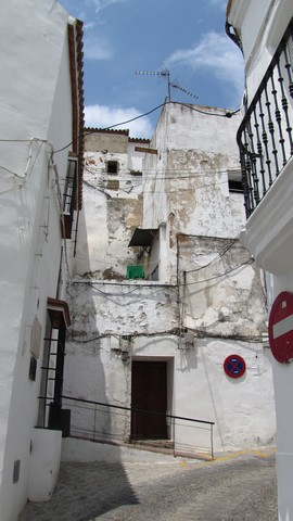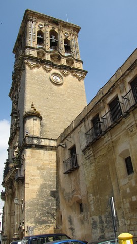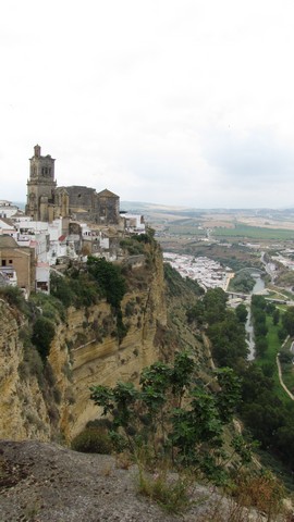 In Arcos de la Frontera angekommen finden wir zufällig am Ortsanfang einen wohl halboffiziellen Parkplatz, eigentlich nur ein freies Gelände ungepflastert, aber es stehen ein paar andere Autos da und es kostet keine Gebühren. Auf den anderen Straßenseite geht es steil eine Treppe rauf zum Beginn der Altstadt und auch von da oben geht es noch steil der Berg hoch. Und die Strassen wieder mal wieder extrem schmal. In einem alten Palast befindet sich die Touristeninformation, hier gibt  es nicht nur Stadtpläne von Arcos zu kaufen sondern auch von Sevilla und Granada, sehr praktisch da wir noch gar keine Pläne haben.