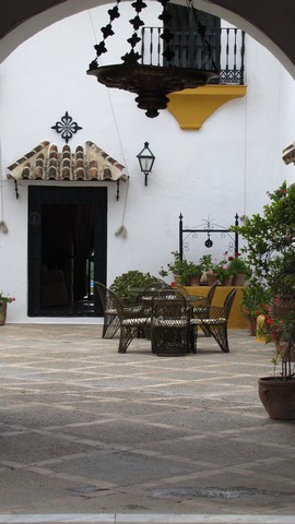Zunächst geht es aber noch eine Nacht nach Arcos de la Frontera, das soll auch ein ganz besonders schöner Ort sein ähnlich Ronda. Und wie in Ronda gibt es ein Parador Hotel direkt an der Felskante gelegen, das wollte mein Freund eigentlich buchen, war aber 3 Monate vor der Reise schon ausgebucht, so mussten wir also was anderes suchen. Hotels gab es da wohl nicht viele, bei HRS haben wir aber etwas in der Umgebung im Ortsteil El Santiscal die „Hacienda El Santiscal“ entdeckt: ein Haus aus dem 15. Jahrhundert zum Hotel umgebaut sogar mit Pool und nur 95 € (für spanische Verhältnisse günstig) und außerdem am Rand eines Sees gelegen, die Fotos sahen toll aus, das wurde gebucht.