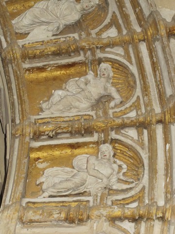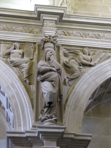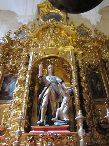 Auch das hat uns gewundert: eine eigenartige Figur wieder mit nacktem Bein, das scheint ein beliebtes Motiv in spanischen Kirchen zu sein.
