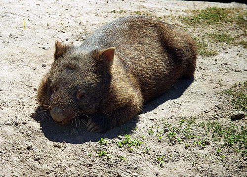 Auf einmal bemerken wir ein Tierchen auf dem Parkplatz. Ich meine es ist ein Wombat.