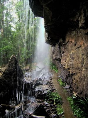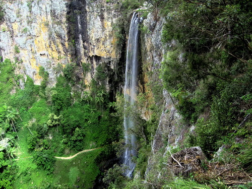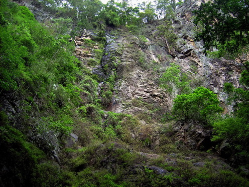 Weiter geht es auf nassem und rutschigem Boden vorbei an Felswänden.