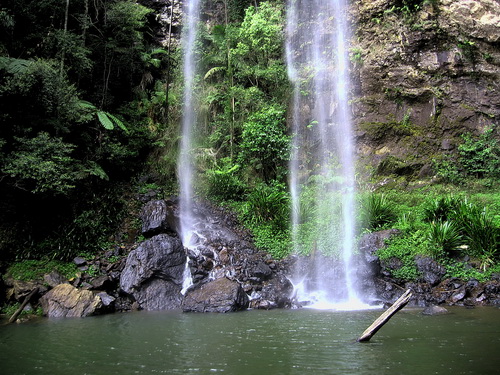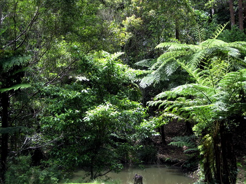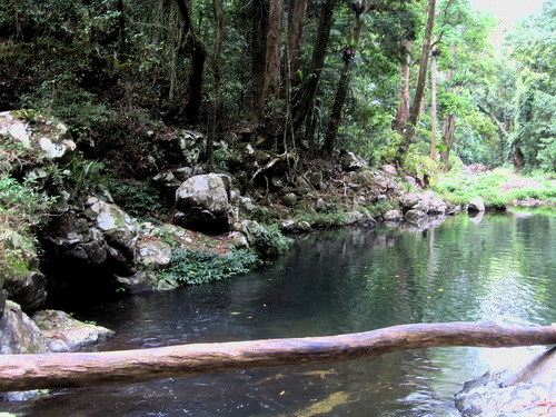 Dann geht es steil bergab zu den Guongarool Pool. Eine Badestelle mitten im Regenwald. Ach Leute, was soll ich sagen. Nur der Guide springt euphorisch ins kalte Nass. Uns Anderen ist das Wasser definitiv zu kalt. Ich glaube jeder von uns denkt auch gerade, wie weit es wohl zum Auto ist.