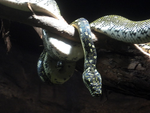 Auf einmal sehen wir den rest der Gruppe unter einem dunklen Gebüsch. Sie winken uns heran. Oh, schon wieder eine Schlange. Mit respektvollem Abstand schiesse ich dieses Foto: