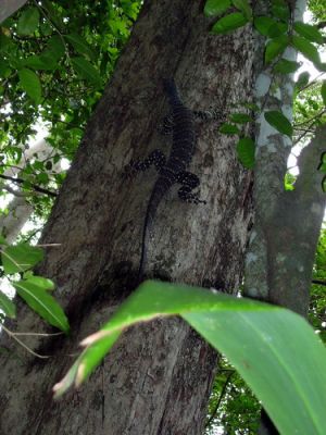 Hier eine kleine Echse, die den Baum heraufkriecht.