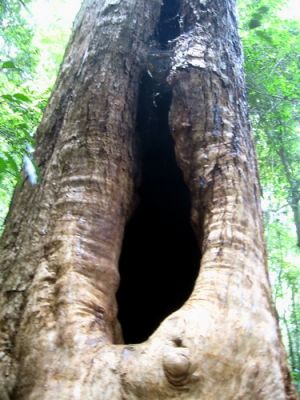 Dann erreichen wir den Black Butt Tree. Ein Riesenbaum mit einer grossen Aushöhlung. Meine Kräfte sind schon aufgebraucht, so dass ich nicht in die Höhle hinaufkomme. Tat so, als wenn ich es auch nicht wollte.