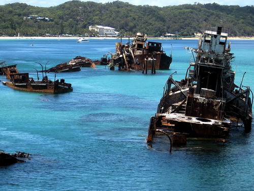 Man kann an diesen Wracks schnorcheln und tauchen, aber dafür hatten wir leider keine Zeit.