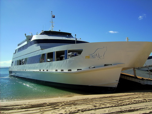 Vom Brisbane Hafen geht es mit dem MI-Cat zur drittgrößten Sandinsel der Welt. Die Fahrt nach Moreton Island beträgt 1,5 Stunden.