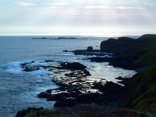 Erstes Ziel ist der Bells Beach, ein sehr berühmter Surfstrand. Allerdings sind heute kaum Wellen und es ist windstill und sehr warm.