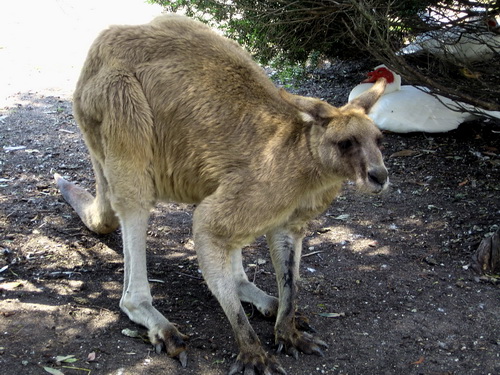 Immer wieder laufen uns auch Känguruhs über den Weg. Hier ein sehr altes Tier, wie ich glaube. Wirkt nämlich sehr schwach auf den Beinen.