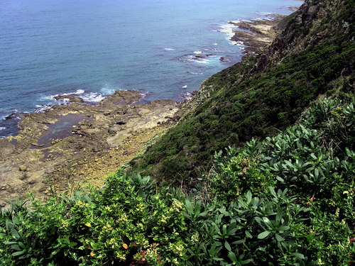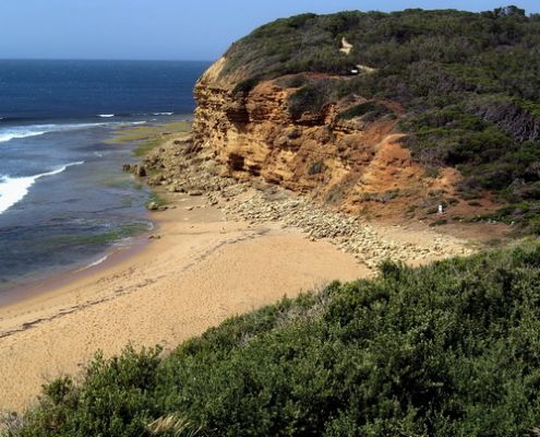 Erstes Ziel ist der Bells Beach, ein sehr berühmter Surfstrand. Allerdings sind heute kaum Wellen und es ist windstill und sehr warm.