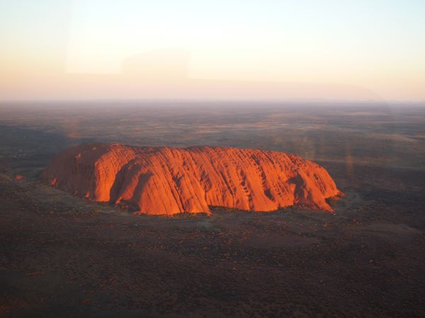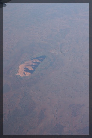 Ein schönes Luftbild vom Uluru kann ich übrigens auch beisteuern - aufgenommen allerdings nicht aus einer Cessna, sondern aus einer 747. Der Pilot hat auf dem Flug von Melbourne nach Singapur extra einen Bogen geflogen, damit die Passagiere auf der linken Seite die Kata Tjuta und diejenigen auf der rechten Seite den Uluru bewundern konnten...
