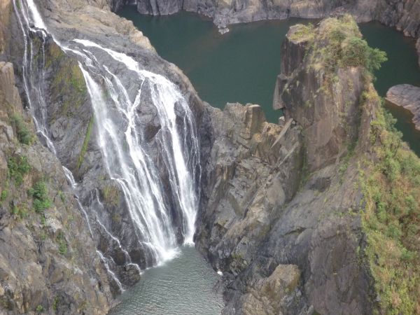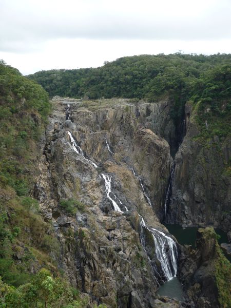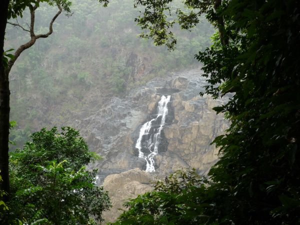 Diese sehr seltenen Laufvögel sind die einzigen, die Früchte ab einer bestimmten Größe noch als Ganzes verdauen und haben damit eine wichtige Funktion für das Fortbestehen bestimmter Baumarten im Regenwald - ein nächstes Highlight unserer Reise. Nun aber ab in die Atherton Tablelands. Die Fahrt soll sehr malerisch sein. Wir glauben das sofort, können es aber nicht überprüfen, da wir dichten Nebel und eine Sicht von meist unter 50 Metern haben. Bei Milla Milla machen wir eine Pause in der Mungalli Creek Dairy und essen sehr leckeren und mächtigen Cheese Kake. Wow, ein Stück und wir sind pappsatt. Mittagsessen gestrichen. Und weil wir schon mal da sind, fahren wir gleich noch zu Mungalli Falls, ein sehr schöner Wasserfall in der Nähe.
