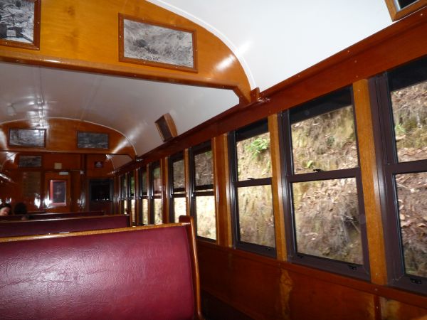 Heute genießen wir wieder ein hervorragendes Frühstück auf der Hotelterasse des Shangri La. Wir wollen nach Kuranda – nicht mit dem Mietwagen, sondern im historischen Zug, angetrieben von einer Dampflock. Ganz wie beim Traumschiff. Also laufen wir erstmal vom Hotel quer durch die Stadt zur Central Station. Wir setzen uns in ein altes Abteil und kommen mit einem sehr netten Pärchen aus der Schweiz ins Gespräch. So kriegen wir auch mal ein Foto mit uns beiden drauf (hier aber nur eine Abteilaufnahme).