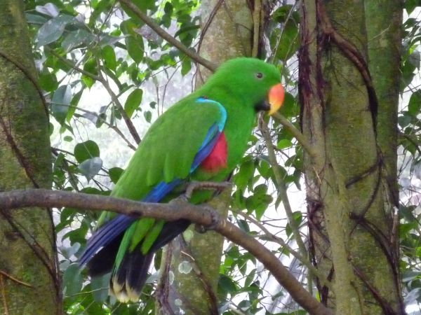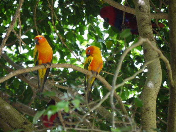 Nach dem Koala gehen wir noch durch das Freigehege und füttern ein paar von den altersschwachen Kängurus. Wenigstens im Zoo bekommen wir welche zu sehen. Als nächstes geht es dann ins Birdhouse. Sandra ist es etwas unheimlich. Viele Vögel hat es hier, die alle frei herumfliegen. Wir können aber unbesorgt sein. Sie stürzen sich zwar begeistert auf Besucher, aber nur auf diejenigen, die am Eingang Vogelfutter erstanden haben. Wir sind uns nicht sicher, ob diejenigen die Folgen bedacht haben. Ein paar nette Bilder entstehen hier. Einen Kasuar sehen wir auch nochmal. Aber nach einer guten halben Stunde haben wir auch hier genug gesehen.