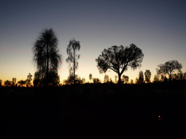 Als nächstes geht es zum Supermarkt, Getränke kaufen. Die Preise hier in der  Yulara Anlage sind nicht so schlimm wie befürchtet. Etwas teurer, aber sehr moderat, wenn man bedenkt, dass hier weit und breit sonst keine Alternativen sind. Ein echtes Monopol quasi. Jetzt geht es aber endlich zum Ayers Rock, wo wir dann bis zum Sonnenuntergang ausharren werden. Man soll sich von den Fotos nicht verwirren lassen. Wir stehen in einer Reihe mit bestimmt über 200 anderen Fahrzeugen und warten geduldig hinter der Absperrung darauf, dass der immer noch 10km entfernte Riesenberg in der untergehenden Sonne in rotes Licht getaucht wird. Die Massen verteilen sich aber sehr gut. Die Stimmung ist ruhig und friedlich. Wir kommen mit einem sehr netten älteren Herrn aus Adelaide ins Gespräch. Wo er wohnt, schauen öfter mal Koalas in den umliegenden Bäumen vorbei. Sandras nächstes Wunschurlaubsziel steht damit fest. Der Sonnenuntergang ist tatsächlich so WOW, wie man es sich eigentlich nicht vorstellen kann. Das ist schon eine Liga mit dem Grand Canyon in den USA. Eine kleine Fotoserie zum Sonnenuntergang: