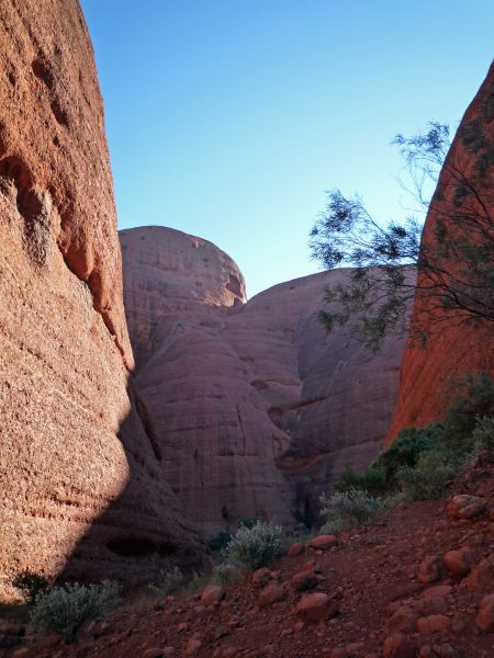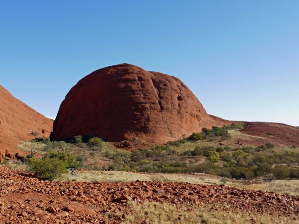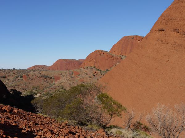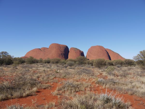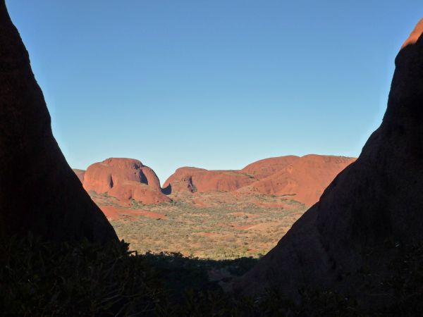 Auch wenn es jetzt bestimmt schnell wärmer wird, fahren wir trotzdem recht zügig zurück ins Resort. Am windgeschützten Pool lässt es sich gut aufwärmen. Um 13 Uhr geht es los zu den Katatjutas.