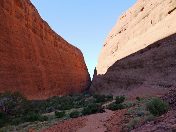 und zurück, während Sandra wartet. Auch den Sonnenuntergang erleben wir bei den Olgas am entsprechenden Lookout.