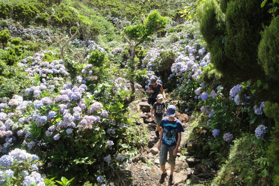Nach dem ersten Einrichten machten wir uns gleich auf den Weg zu den Caldeiras, so werden hier die Kraterseen genannt. Es geht vorbei an Hortensienhainen.