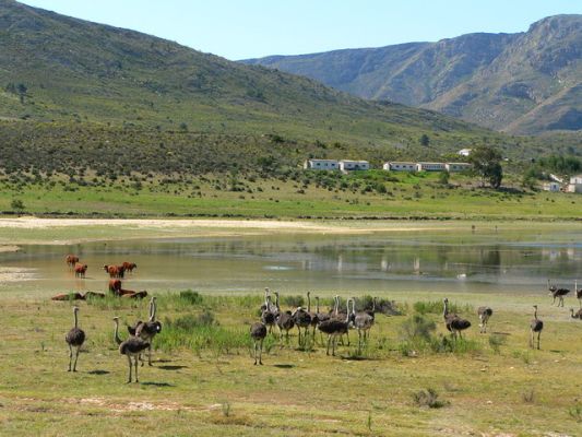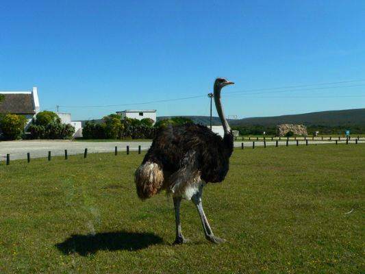 An einer Stelle, an der angeblich noch die Überreste eines Shop aus der Bauzeit der Passstraße zu sehen sein sollen, machen wir Lunch. Auf Teerstraße geht es Richtung George zurück, hier scheinen die ersten Straußfarmen zu sein.
