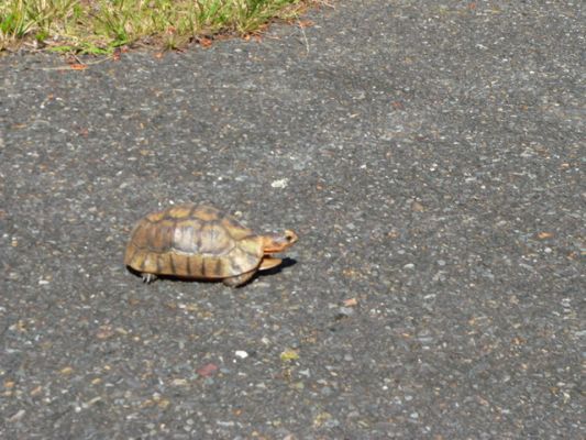 Bevor wir den NP kurz nach 13:00 h endgültig verlassen, fahren wir noch einen ca. 7 km langen Scenic Drive, der uns nicht nur wegen der drei unterschiedlich aussehende Schildkröten, die uns über die Straße laufen, gefällt.