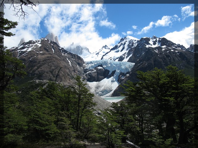 Die Wanderung von der Hosteria Pilar aus zum Glaciar Piedras Blancas haben wir auch gemacht und hat uns auch super gefallen. Da sich der Fitz Roy aber komplett in Wolken hüllte, machten wir am Campamento Poincenot wieder kehrt. Unser Versuch am nächsten Tag direkt von El Chaltén aus zur Laguna de los Tres hochzusteigen war leider ebensowenig von Erfolg gekrönt. Das war schon sehr schade.