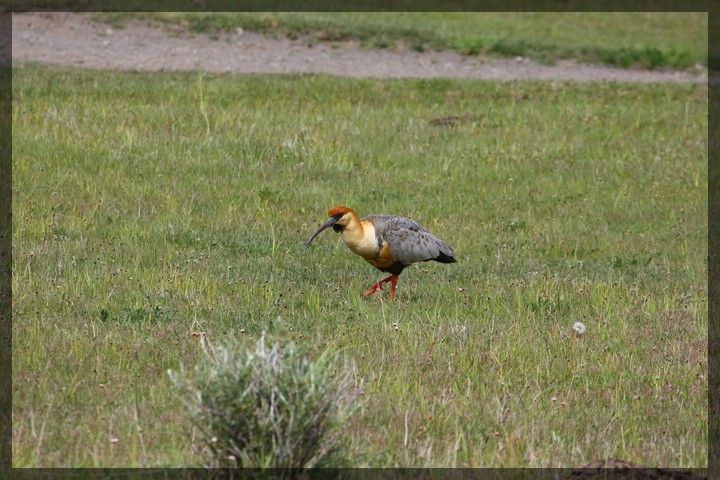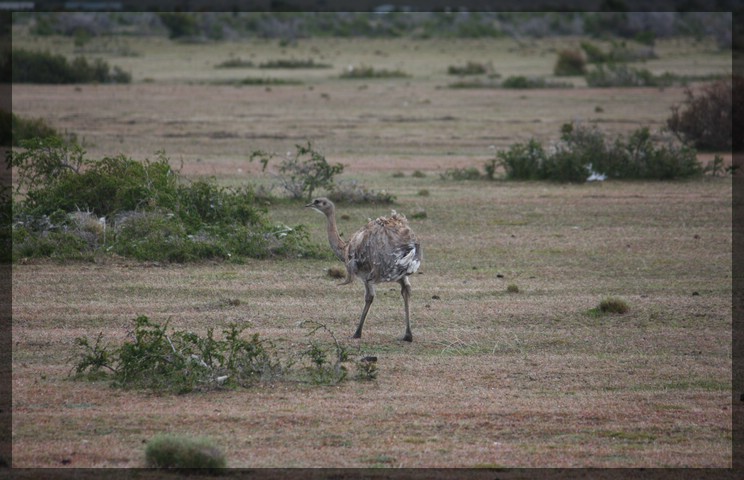 Um kurz nach sieben Uhr gibt es Frühstück im netten Speisesaal unserer Hosteria. Die Hosteria hat Jugendherbergs-Charme, das aber im positiven Sinne und keineswegs zu vergleichen mit dem Massenbetrieb Paine Grande Lodge im Parque Nacional Torres del Paine. Die Qualität des Frühstücks ist hier richtig gut. Wir brechen auf und verlassen die Stadt wieder Richtung Norden auf der Ruta 9, auf der wir gestern angekommen sind. Die Fahrt bis zur Abzweigung der Ruta 255 an der Laguna Cabeza del Mar verläuft ereignislos. Wir biegen auf die Ruta 255 ab, die Richtung Osten und dort zur argentinischen Grenze südlich von Rio Gallegos führt. Im weiteren Streckenverlauf ändert sich die Landschaft neben der Straße kaum: Eine sanft gewellte und mit Gras bedeckte Hügellandschaft. Eine interessante Abwechslung bieten die Tiere, die wir links und rechts der Straße zu Gesicht bekommen: Dabei handelt es sich zum einen um mehrere Nandus. Der erste davon befindet sich direkt neben der Straße und versucht panisch, vor den vorbeifahrenden Autos zu flüchten. Das gelingt ihm aber nicht, da sich in wenigen Metern Abstand von der Straße ein für Nandus unpassierbarer Drahtzaun befindet. Kurz darauf sehen wir einen im freien Gelände herumstehenden Nandu, der folglich kein Problem mit Zäunen hat und wesentlich gelassener drauf ist als sein Artgenosse. Zudem sehen wir viele Flamingos, Guanacos sowie Greifvögel, die sich an den auf der Straße klebenden Überresten von überfahrenen kleineren Tieren - zumeist handelt es sich dabei um Hasen oder Stinktiere - gütlich tun.
