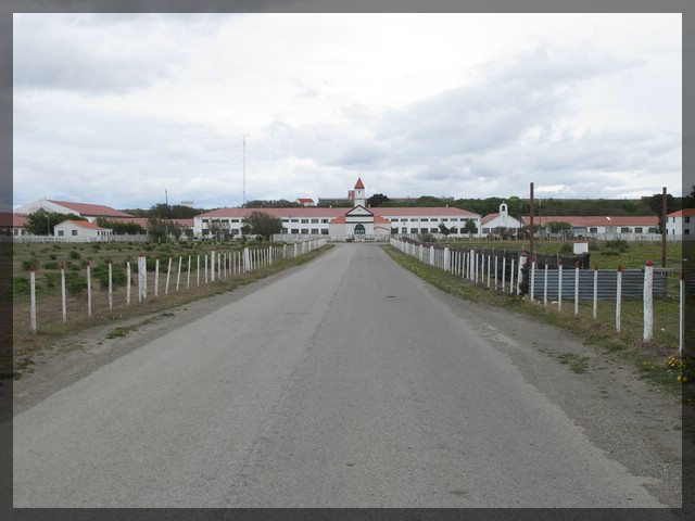Wir wissen, dass der südliche Teil von Feuerland deutlich weniger karg ist als der Norden. Etwas nördlich von den beiden San Sebastians wurde die Vegetation ein wenig dichter und eine in Ost-West-Richtung verlaufende Hügelkette kam in Sicht. Unsere Vermutung, dass diese die erwartete Vegetationsgrenze darstellt hat jedoch getrogen, denn südlich davon geht es weiter durch relativ karges Grasland. Wir kommen an einigen recht wohlhabend aussehenden Estancias vorbei und erreichen einige Kilometer vor der Stadt Rio Grande erstmals die Küste des atlantischen Ozeans. Kurz vor Rio Grande sehen wir auf der rechten Seite der Straße ein altes Salesianerkloster. Die Salesianer kamen in der zweiten Hälfte des 19. Jahrhunderts nach Südamerika, um die dortigen Ureinwohner zu christianisieren, aber auch um deren Kultur zu schützen. Sonderlich erfolgreich waren sie dabei auf Feuerland allerdings nicht. Zum einen starben sehr viele der Indianer an von den Mönchen eingeschleppten Krankheiten. Und zum anderen wurde den Ureinwohnern von den Missionaren der Lebensstil der Weißen aufgedrängt und dadurch die Vernichtung ihrer Kultur eher beschleunigt. Davon zeugen zum Beispiel Fotos, die traurige Indianer zeigen, welche in westliche Kleidung gesteckt wurden.