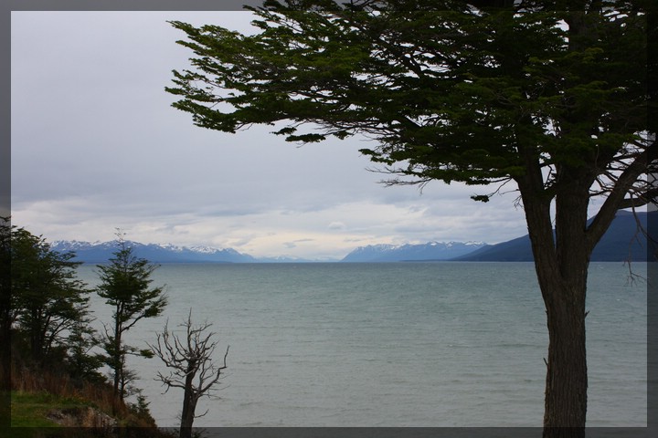 Wir kommen durch die Ortschaft Tolhuin, malerisch am langgezogenen großen Lago Fagnano gelegen und erreichen kurz danach unsere Unterkunft für die kommende Nacht, die Hosteria Kaiken. Hier bekommen wir ein schönes Zimmer mit einem tollen Blick auf dem See. Neben uns ist eine Reisegruppe aus Deutschland da, die ihr Abendessen als geschlossene Gruppe serviert bekommen. Daher müssen wir ein klein wenig länger warten und nutzen die Zeit für einen Spaziergang über das Gelände der Hosteria und zum Ufer des Sees.