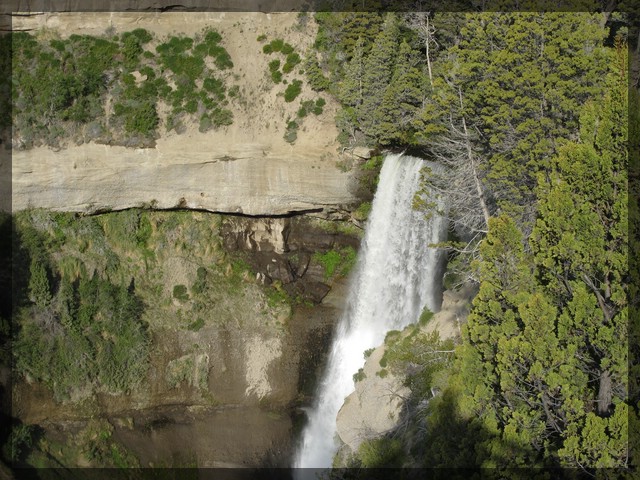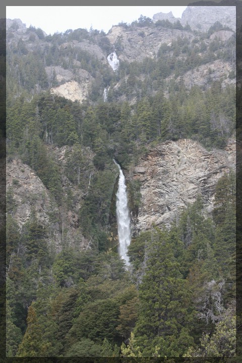 Unterwegs auf der Ruta 259 in Richtung Anden und chilenische Grenze.Für heute haben wir noch eine schöne Sehenswürdigkeit auf dem Programm - die Nant y Fall-Wasserfälle. Um diese zu erreichen, biegen wir etwa 12 Kilometer hinter Trevelin nach links ab und folgen dreieinhalb Kilometer einer äußerst schmalen Gravelroad, die lustig bergauf und bergab durch lichten Wald führt. Als Eintrittsgebühren für Ausländer sind 20 Pesos pro Person angeschrieben, letztendlich fällig werden aber nur 5 Pesos. Vielleicht liegt es daran, dass wir zur Nebensaison hier sind - denn bei unseren vielleicht als mittelmäßig einzustufenden Spanischkenntnissen hält uns ganz bestimmt niemand für Einheimische. Der Park besteht aus einem toll angelegten Rundweg zu mehreren wunderschönen Wasserfällen. Wir sind wieder völlig alleine unterwegs. Die Wasserfälle führen richtig viel Wasser, sind allerdings aufgrund der schon tief stehenden Sonne und der starken Kontraste schwierig zu fotografieren.